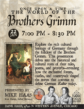 This in-person presentation will explore the times in which this folklore was first collected and published. As the Grimms were part and parcel of the Romanticist movement of the early 19th century, their interpretations of the tales they collected might be seen not only as a reaction to Enlightenment rationalism but also in support of an early nationalist movement seeking to promote a "German" consciousness based on the authentic voices of a common folk bound together by language and and tradition.